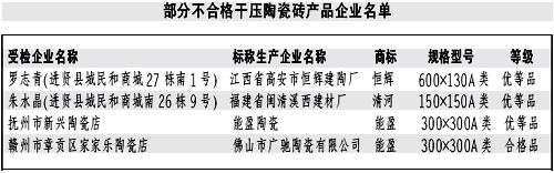 本報(bào)訊記者龔漢斌報(bào)道:近日,江西省質(zhì)監(jiān)局公布了近期對(duì)干壓陶瓷磚產(chǎn)品進(jìn)行省級(jí)產(chǎn)品質(zhì)量監(jiān)督抽查的結(jié)果。質(zhì)監(jiān)部門共抽查了51家生產(chǎn)企業(yè)生產(chǎn)的52批次產(chǎn)品,抽樣合格率90.4%。抽查結(jié)果表明,本次抽查的陶瓷磚其放射性核素限量指標(biāo)均達(dá)到了標(biāo)準(zhǔn)規(guī)定的要求;但仍有部分產(chǎn)品存在一些問題。 本次抽查的5批次不合格產(chǎn)品中,有1批次產(chǎn)品的破壞強(qiáng)度達(dá)不到標(biāo)準(zhǔn)規(guī)定要求,兩批次產(chǎn)品的斷裂模數(shù)指標(biāo)達(dá)不到標(biāo)準(zhǔn)規(guī)定要求。強(qiáng)度性能指標(biāo)不達(dá)標(biāo)易造成產(chǎn)品達(dá)不到應(yīng)有的承重能力,在使用中產(chǎn)生開裂、破碎或表面缺陷等現(xiàn)象,影響產(chǎn)品的使用壽命和使用性能。有4批次產(chǎn)品的吸水率達(dá)不到標(biāo)準(zhǔn)規(guī)定要求。吸水率不達(dá)標(biāo),將影響消費(fèi)者的正常使用。 對(duì)本次監(jiān)督抽查不合格的產(chǎn)品,省質(zhì)監(jiān)局將依法嚴(yán)肅處理。
